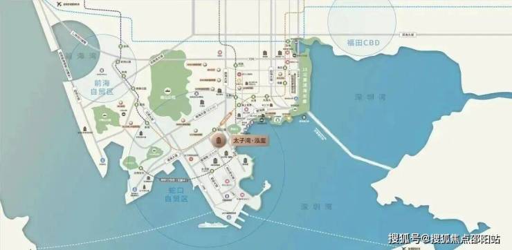 整个太子湾被2&5&12号线三轨覆盖,2号线是众所周知的豪宅线,还接驳5号线;12号线则是从西部大空港会展湾延伸到宝安南山,贯穿整个蛇口,通过这3条地铁线可以3站前海、7站后海、12号线直达机场。