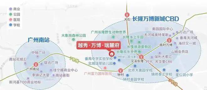 越秀·瑞麓府的位置十分优越,紧挨长隆动物世界的西南侧,西侧靠近钟顺路,距离万博CBD大概5公里左右,开车仅需10分钟左右即可抵达。万博商务区经过扩容,越秀瑞麓府售楼处电话☎:400-150-5057规模已赶超珠江新城,这里汇聚了顶级商业和文旅资源,如万达广场、广晟万博城等,为居民提供了丰富多样的生活和娱乐选择。