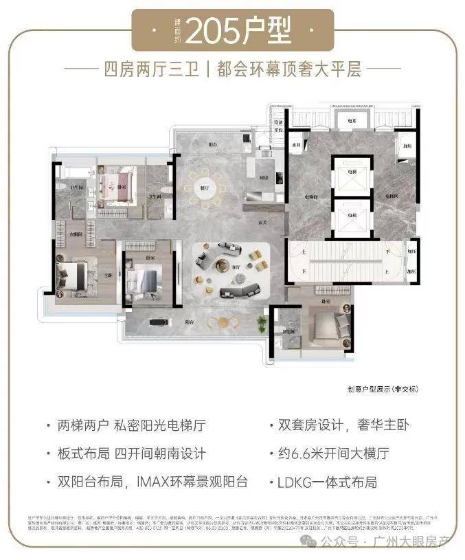 建面约205㎡奢适四房---中轴园林上,环幕景观楼王