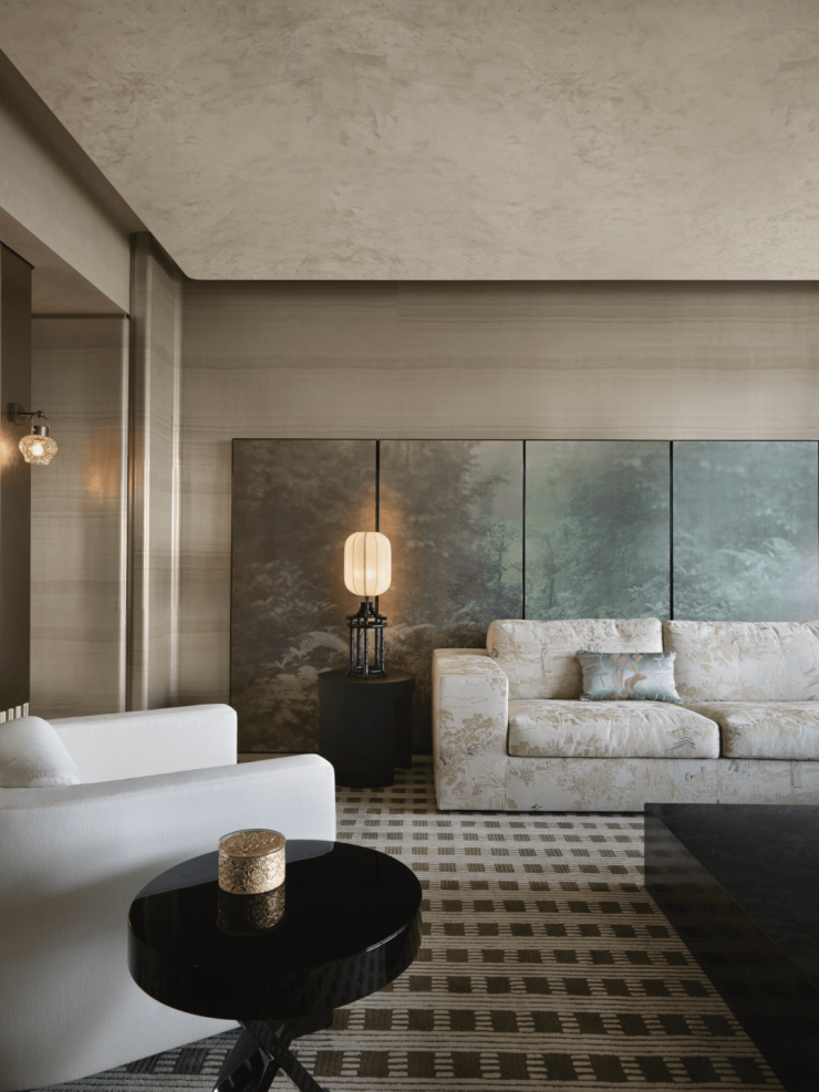 Armani Casa的设计将水墨刺绣融入到居室中,巧妙地布局,描绘着举杯谈笑、雅士风度的迎客之道。