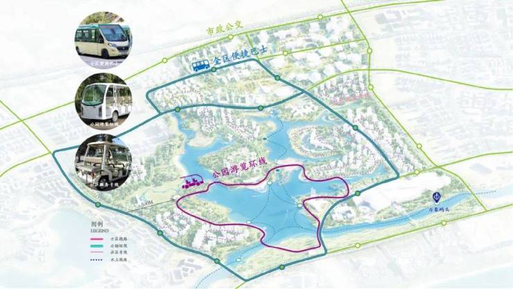 因此,配套最后一层图层便是将底色和功能图层串联起来,通过先进的路网交通流量前瞻,如滨水慢行系统与城市主干道的无缝衔接,规划更先进的交通路网,实现多方向疏导热点目的地交通及停车安排等具体的交通友好措施;