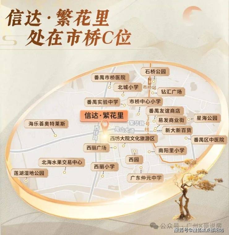 配套成熟度高,所见即所得。1 公里内有西丽广场、钻汇广场等商业体,3 公里覆盖易发商业街、奥园广场等 5 大商圈;4 公里内有番禺中心医院、番禺区中医院等 3 所三甲医院。交通上,紧邻禺山大道、西环路主干道,自驾 20 分钟可达万博 CBD,周边 1 公里内有 30 个公交站,距离地铁 3 号线市桥站约 1.7 公里。