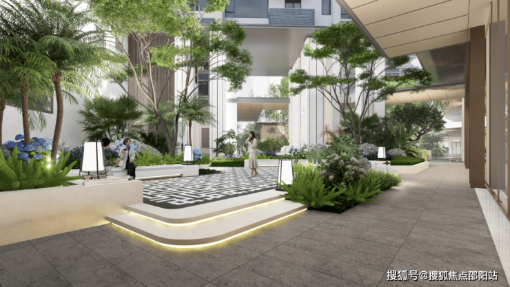 「繁花归宇」景观大堂豁然铺展,“前庭后院“的设计手法,使中心水庭藏而不露;金属屏风汲取了余荫山房玉兰花的设计灵感,通透立面辉映天光云影,精筑门庭以艺术线条勾勒仪式感。花影摇曳,浅水低吟,归家步履被温柔包裹,瞬间卸下尘嚣,心境澄明如洗。