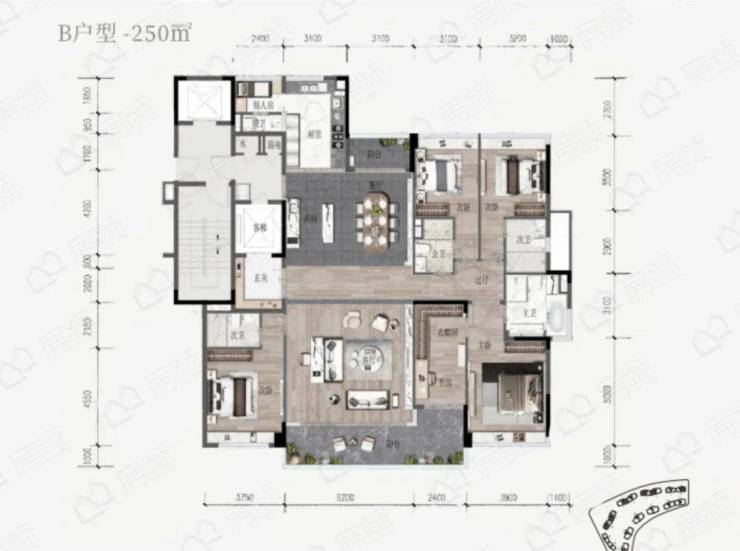项目均为建面经200-350㎡纯粹业主圈层大平层,三梯两户设计,实现专梯专户享受,双阳台观景,开阔客餐厅、中西双厨、3.5米PLUS层高,将生活尺度大大拉满!(部分户型)