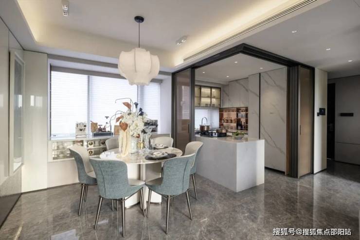 在客厅打造上,项目采用LDKB一体化设计,提前规划陪伴式生活场景,打造成长型家庭空间。