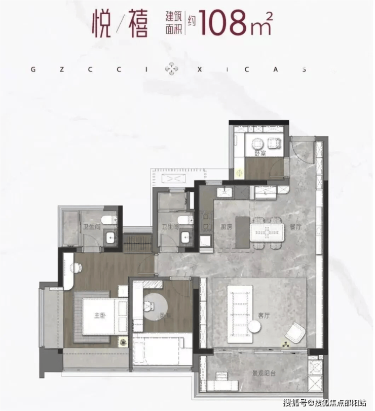 来看看108户型,都不能说是3房。只能算2+1。