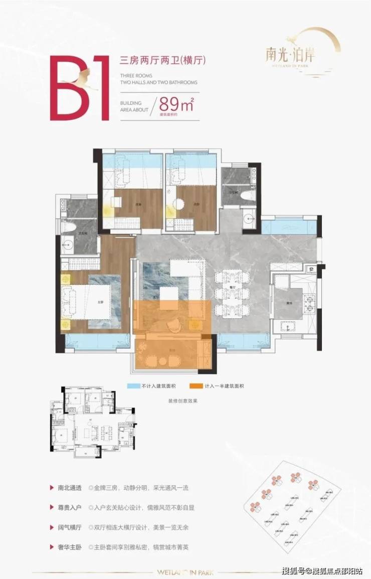 B1戶型:89㎡,3房2衛