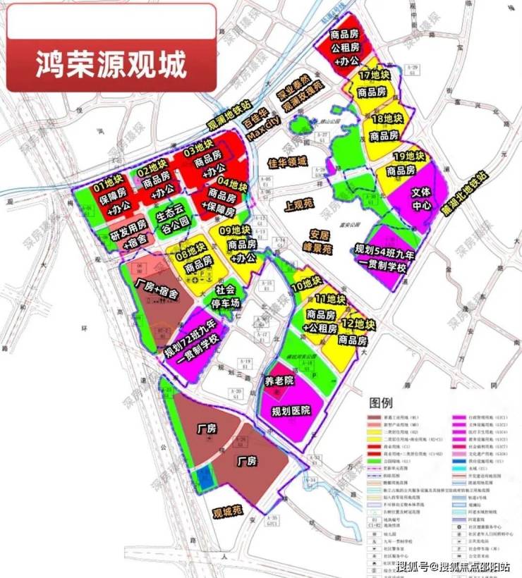 鸿荣源观城,原为龙华区观湖街道观城第一期城市更新单元,该城市更新单元总规划占地约38万㎡,总建筑面积约275万㎡,其中住宅面积133万㎡(其中包含了公租房18.08万㎡,土地整备安置房1万㎡),其中1/2期加起来有8108套房源,包含了有商品房5602套,租赁+安置房2506套。