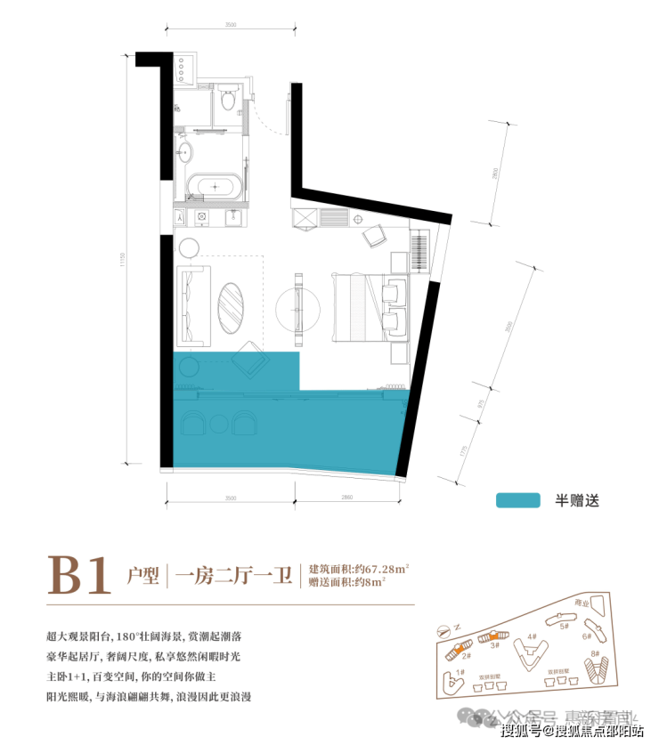 ⭐豪华型一房一厅瞰海产品:全海景横厅设计⭐