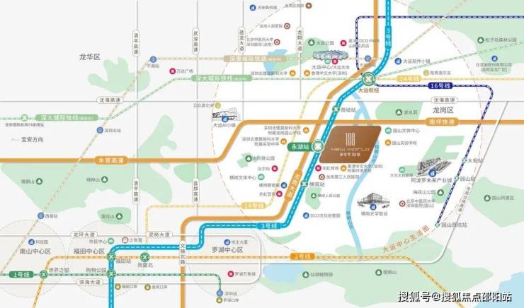 交通,承载着城市的雄心,更勾勒生活的版图经纬。新世界188號与3号线永湖站0距离接驳,2 站速抵大运枢纽,可换乘14/16号线及深大城际快线;周边南坪快速、水官高速、东部过境高速等多线环伺,“三横五纵”多维路网于此铺陈,可速链东部全域,畅达深港主城核心。