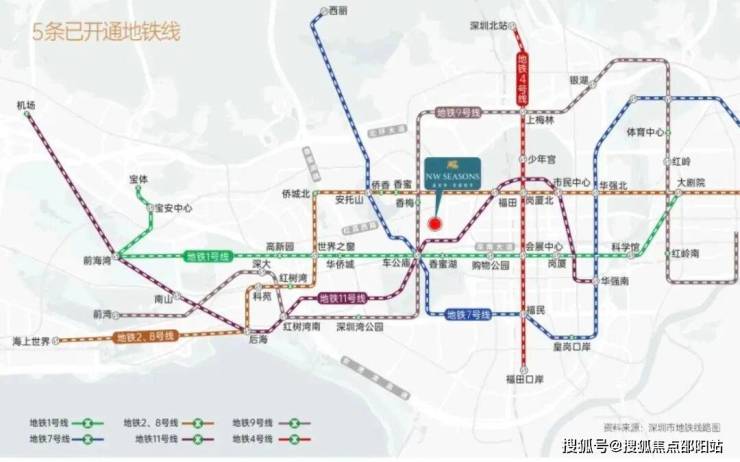 香蜜四季位于深圳福田区核心板块,地处新闻路与香梅路交汇处,隶属香蜜湖 泛辐射范围,紧邻香蜜湖金融中心。周边交通网络发达,距离9、11号线约500米,双地铁加 持,无论是自驾出行还是搭乘公共交通,都能快速到达城市的各个角落。