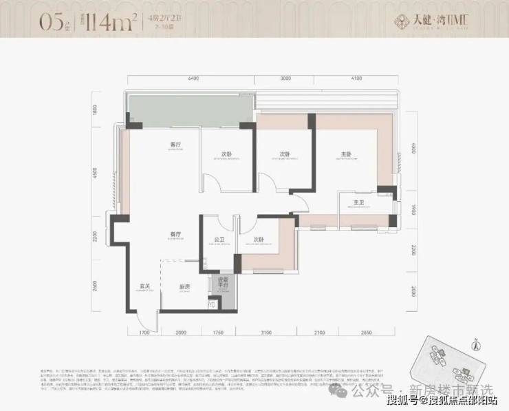 对比之前的113平户型,生生多了个房间,而且主卧尺度很大,开间和进深都超过了4米,双面采光,主卧进门独立衣帽间,具备一个次卧打通做大客厅的能力,新规户型优势很明显!