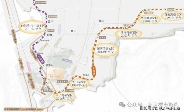 轨道交通:距离2号线/5号线“赤湾站”约500米,步行约8-10分钟,5号线串联前海、宝中、西丽留仙洞、深圳北站,2号线被誉为深圳豪宅线,串联太子湾、深圳湾、红树湾、华侨城、香蜜湖、福田中心等核心地段;