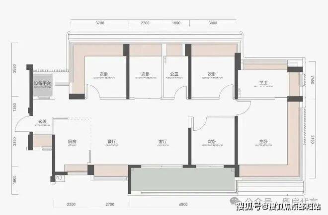 主卧套房+次卧类套房设计,提升家庭各成员居住尊严。