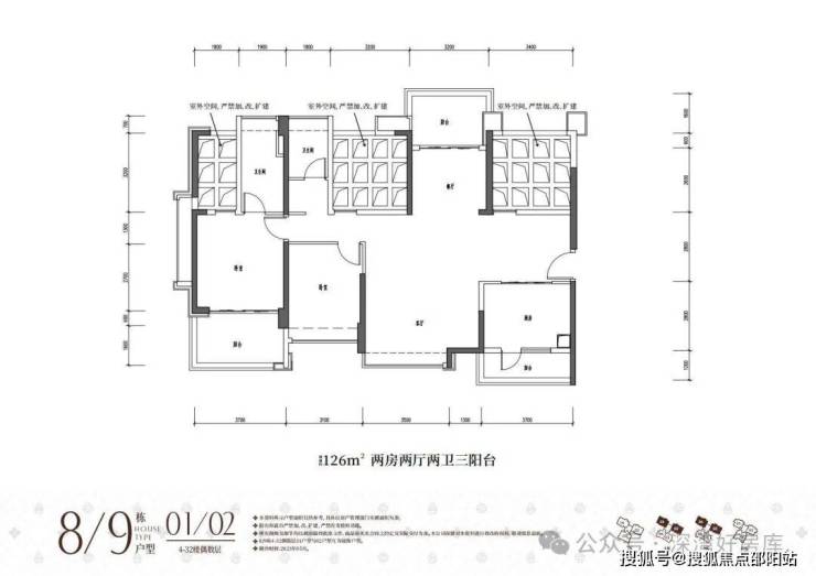 ①高阔奢享:建面约86-176㎡墅境宽宅,改善型大四房,全南向户型天然舒适;两梯三户低梯户比,多阳台露台设计,悦享阔绰居住空间;方正户型结构搭载更多半开放设计,高阔空间实用率与灵活性大幅提升。