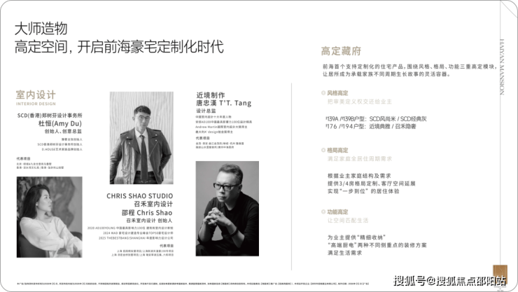 前海首个支持深度定制化交付的商品住宅,装修风格、空间格局、功能硬件均提供二选一方案。