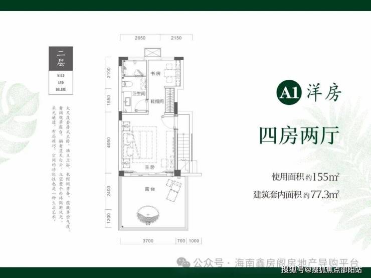 二期在售户型1:跃层洋房77.3㎡三房一厅