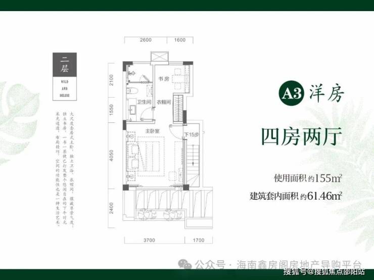 二期在售户型3:跃层洋房61.46㎡三房一厅