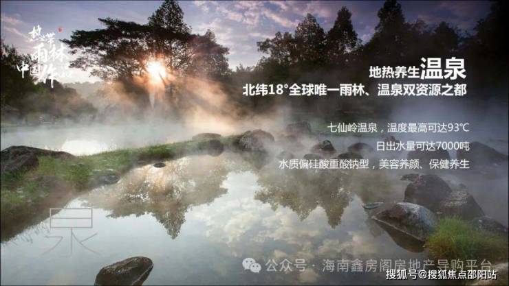 七仙岭的温泉闻名遐迩,是全海南岛最大的温泉之一,出水温度最高可达93℃,温泉水质属于偏硅酸重酸钠型,具有美容养颜、保健养生的功效。对于风湿性关节炎、痛风、心血管疾病、皮肤病都有不错的疗养功效。