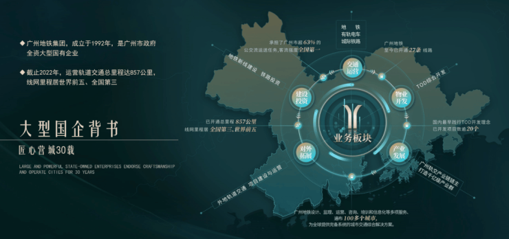 广州地铁地产,30年发展践行“轨道+物业”战略部署,引领TOD城市发展格局,满足市民的美好生活向往。