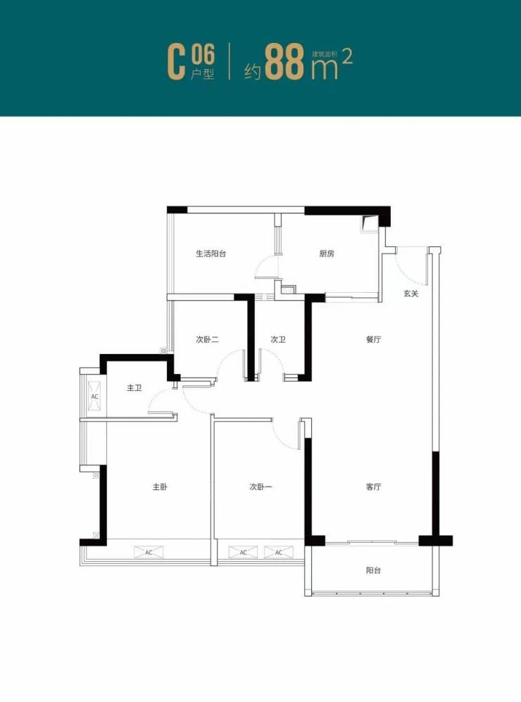 88㎡的3房2厅2卫,折后总价311-393万/套,单价3.5-4.46万/㎡。