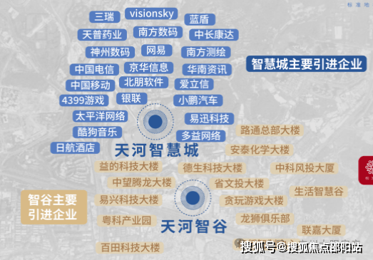 天河智慧城核心区,这里汇聚有网易总部、酷狗、南方测绘、小鹏汽车、极飞科技等企业大咖,此外德生科技、北明软件、极飞科技等新兴的高科技企业也纷纷进驻于此。