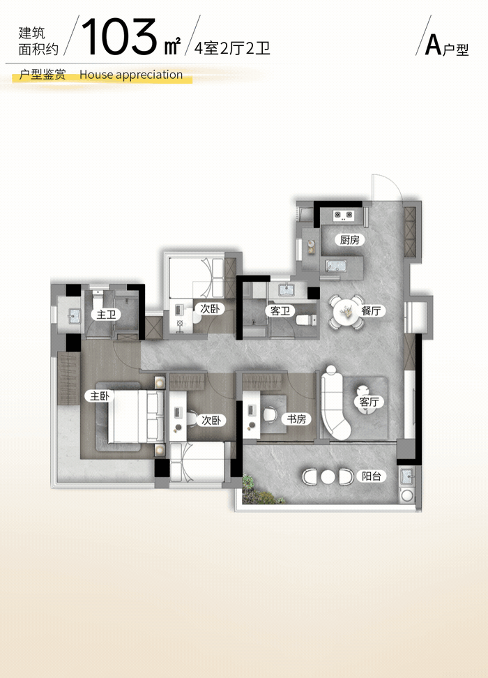 主卧约29㎡奢阔套房+270°无柱转角全景舱,私享级尺度