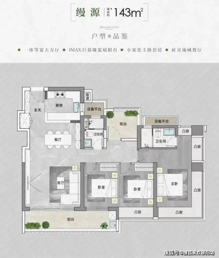 设计注重人性化关怀,公共配套和绿化空间丰富,开窗合理,居住舒适度高;