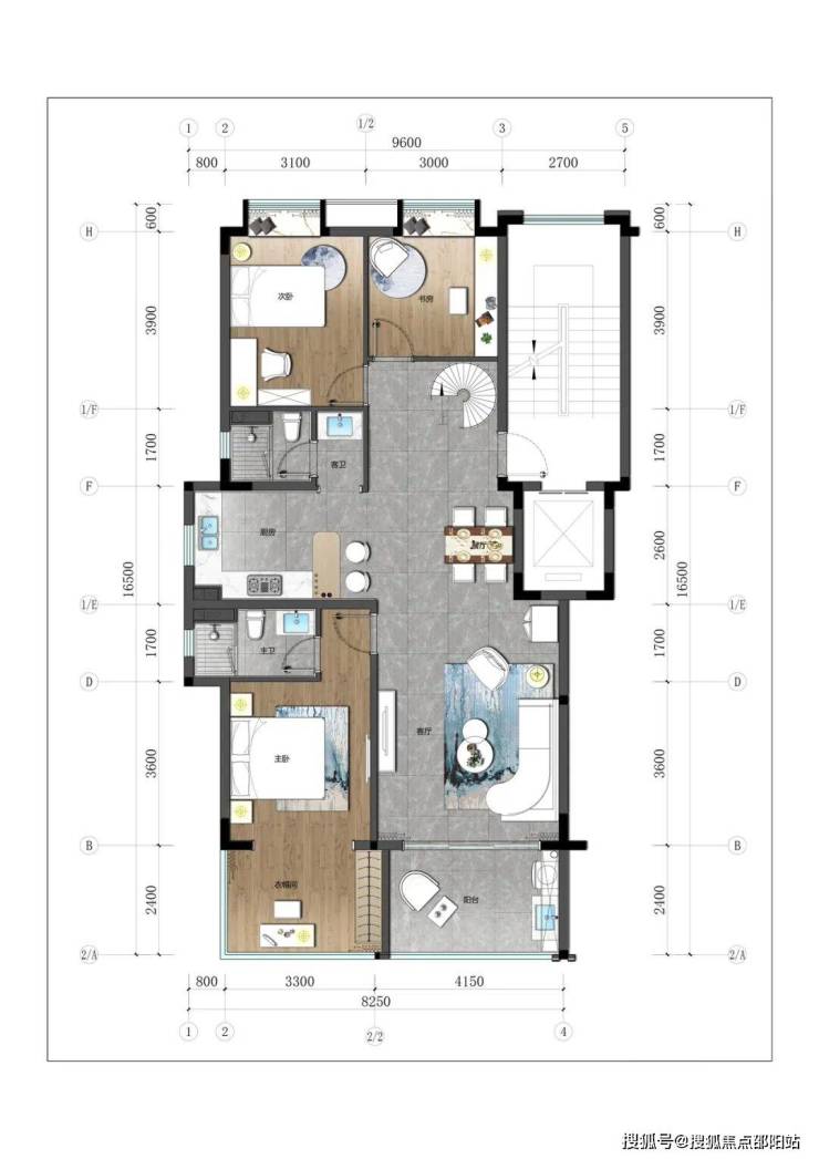 3.下叠:建筑面积约100-110㎡,四房三厅三卫。