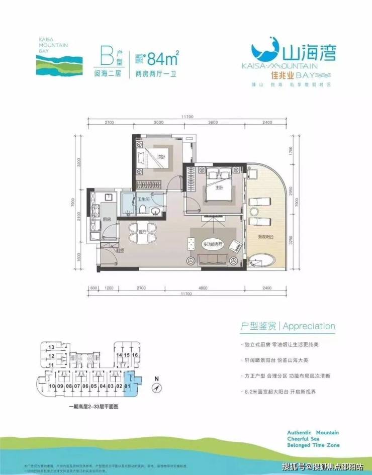 (2)一号楼价值点;共33层;4梯16户;共512套。