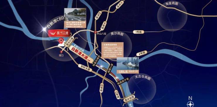 项目约750m即达5号线地铁滘口站,30分钟直达珠江新城,白鹅潭未来有超10条地铁线路穿过,覆盖大湾区1小时交通生活圈,目前广佛线、地铁1、5、6、8号线已开通运营,地铁10、11、22、25号线等重要线路规划/建设中。