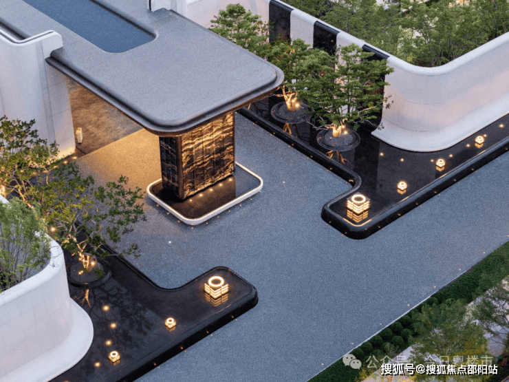 环抱式景墙+酒店式落客+宇宙黑金照壁