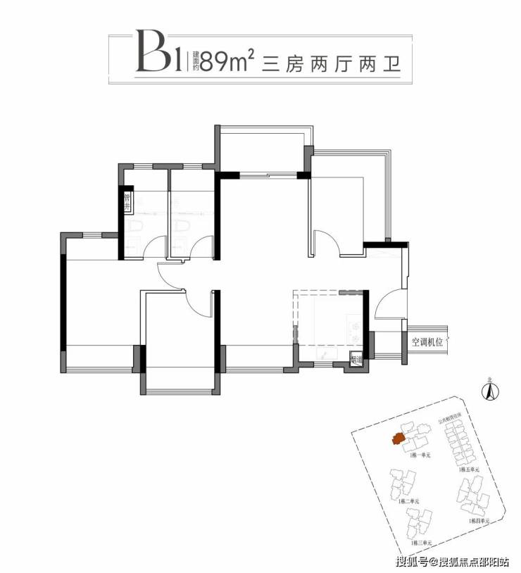 二:建面约89平方B1B2户型三房两厅两卫