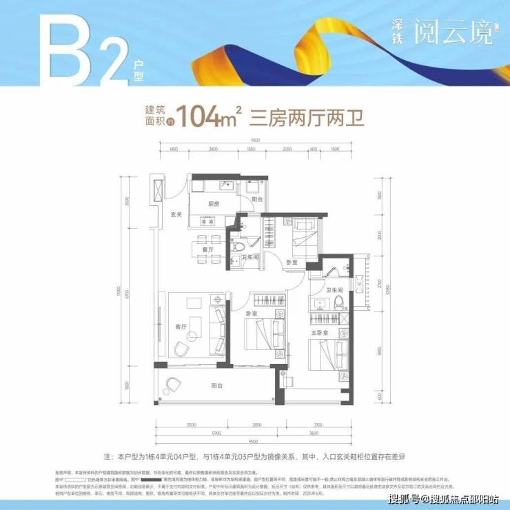 104㎡的3房2厅2卫,折后总价459-504万/套,单价4.41-4.83万/㎡