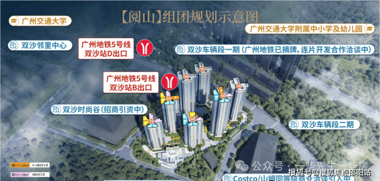 地铁:首开阅山组团距5号线双沙站B口仅50米(步行40步),2站到鱼珠CBD,5站金融城,6站琶洲东区,10站珠江新城;距13号线双岗站500米,换乘一次到天河。