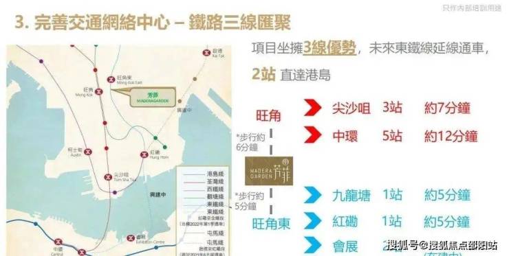 项目邻近港铁旺角东站,距离港岛会展站仅两站之隔,可在短时间内往返商
