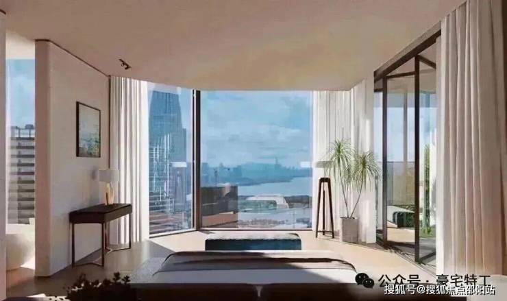 项目规划5栋超高层住宅,采用全玻璃幕墙设计,实用率超95%,主力户型为209㎡以上大平层。项目以“第四代住宅”标准打造,配备空中连廊、星空会所、架空泳池等共享空间,并融入垂直绿化体系