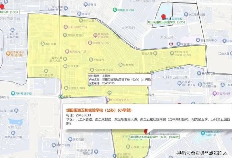 小学学区划分在,科学高中五和实验学校,中学学区划分在坂田实验学校初中部,扬美实验学校初中部,深圳实验坂田校区初中部,科学高中五和实验学校初中部。