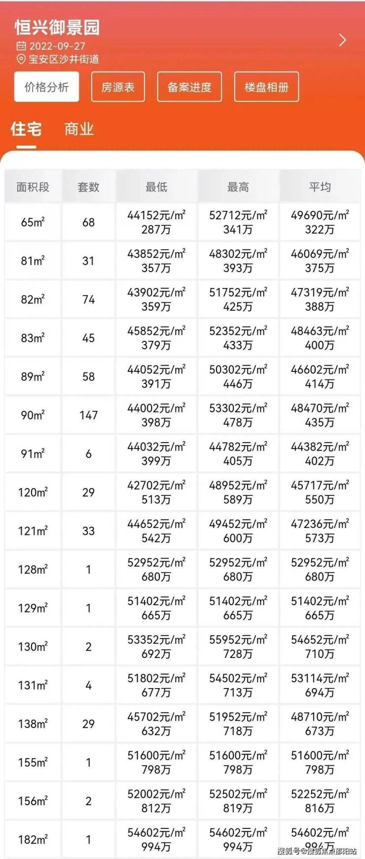 楼盘位于沙井的锦城路和一社区,2022年9月27号推出532套房源,目前剩余152套,备案了380套,去化率71.43%。面积65㎡~182㎡,备案均价47966元,备案总价287万~994万。毛坯现房,目前打出了85折优惠。