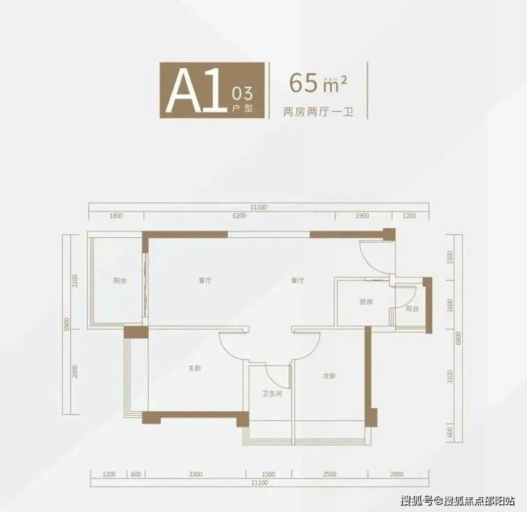 【户型鉴赏】【A-02】建面约65㎡两房两厅一卫