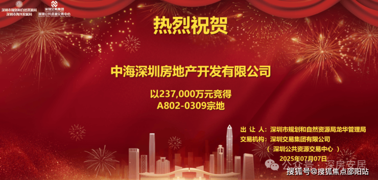 7月7日,中海深圳房地产开发有限公司经过108竞价,最终以总价23.70亿元竞得民治A802-0309地块,成交楼面价38795元/㎡,溢价率40.74%。