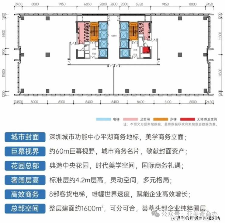 •层高:首层大堂通高约10m,标准层层高约4.2m;
