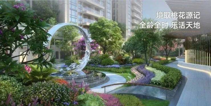 8项目配套:纯粹社区 乐享生活全龄全时 乐活天地:以桃花源记为园境蓝本,以闹市-叩山-寻幽-觅趣-入谷为景观流线,营造世外桃源式的入谷寻幽意境,于城市喧闹中自有一番雅园静谧。更以多元生活场景嵌入社区景观中,沿阶花池、雕塑水景、休闲长廊、屋顶花园,并打造专属儿童天地,打造全龄段的家庭乐活天地。