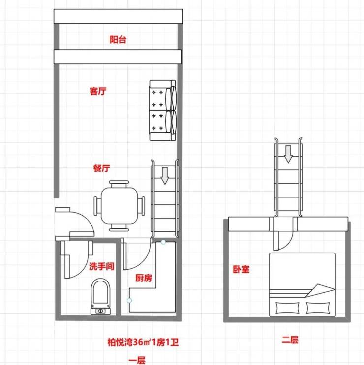 36㎡1房2庁1卫户型图