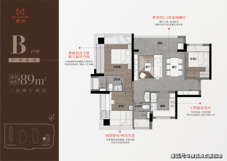 楼栋规划:共2栋31层住宅,梯户比3梯7户/4梯6户,容积率8.91,主推89㎡三房两卫、115㎡四房两卫,精装交付,预计2026年底交房。
