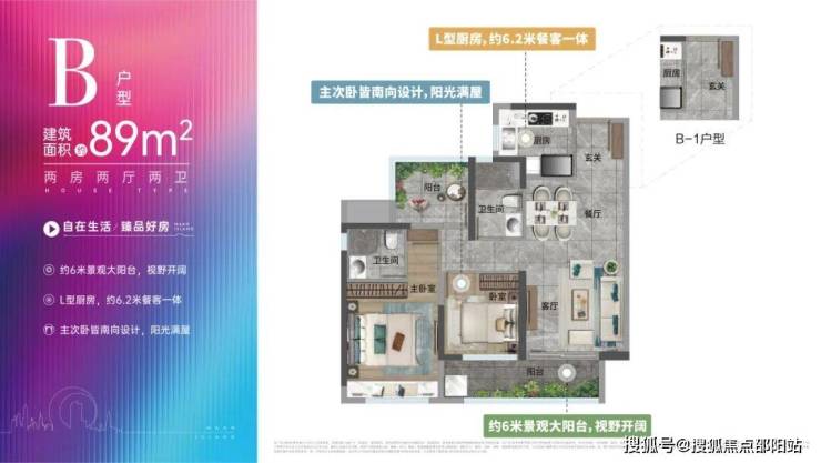 其中,建面约79㎡2房,户型方正,南北通透,空气对流;