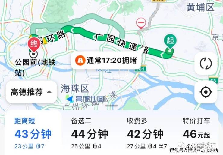 自驾去往越秀公园前:出小区,走岐山路转至广园快速,然后转内环路,全长23公里,耗时43分钟,打车的话40多块。