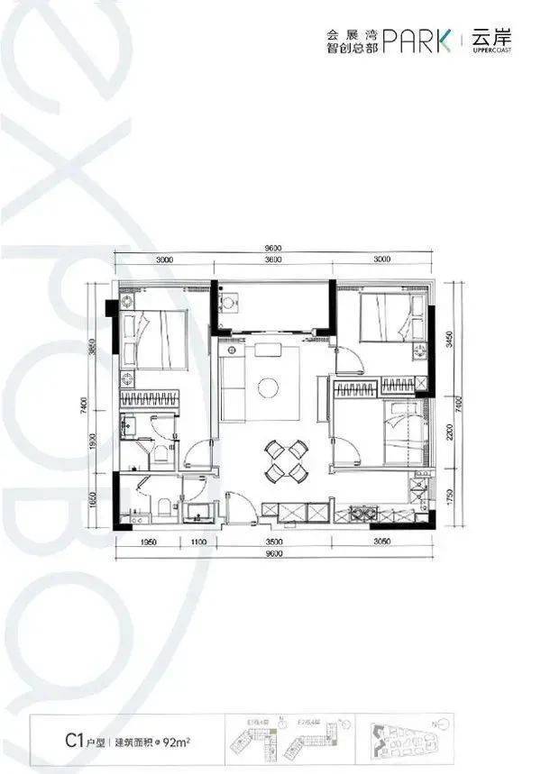【C1户型:92㎡】房型:三房两厅两卫朝向:T5、T6(正南)户型优势:端头位、双面采光、主客分区、无敌景观 (瞰河)