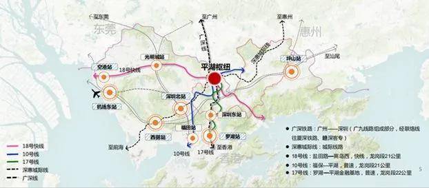 “1+2+3+4”立体交通网:1枢纽、2城际(广深城际、深惠城际)、3地铁(10号线、规划中的17、18号线)、4高速、快速(清平、沈海、丹平、南坪)。