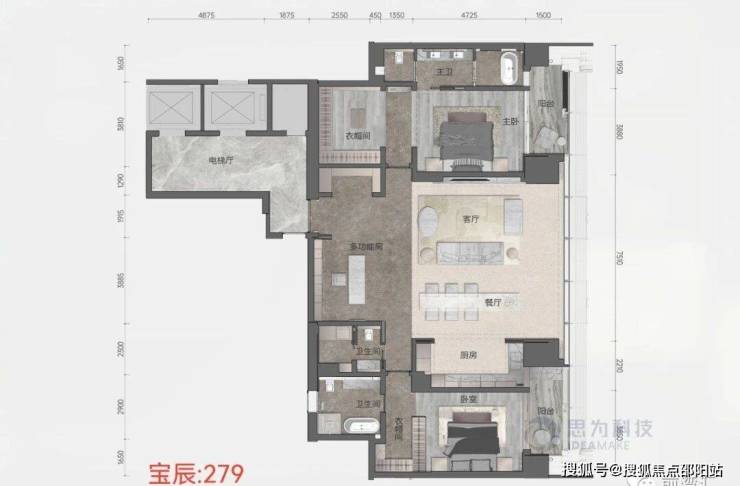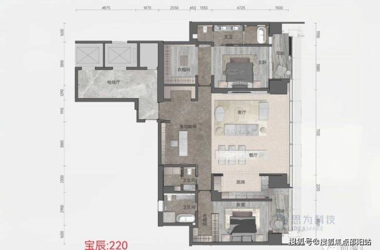 天幕藏品,总建面约8.6万㎡,主打建面约125-280㎡天幕藏品,分布在楼层的中区、高区、超高区,分别命名为风邸(6-24F)、兴邸(27-37F)和颂邸(40-52F)。